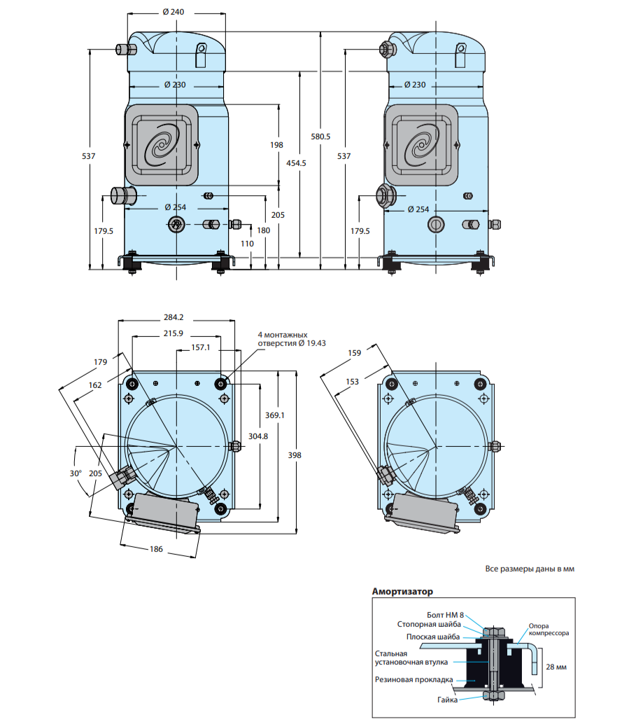 Компрессор SM185-4RI (далее по тексту - компрессор) является спиральным и предназначен для работы в установках кондиционирования воздуха и холодоснабжения, работающих по парокомпрессионному циклу. Компрессор может работать как по отдельности, так и в связке с другими компрессорами. В компрессоре серии SМ используется хладагент R22 и полиэфирное масло 160R. Не предназначены для контакта с питьевой водой в системах хозяйственно-питьевого водоснабжения.